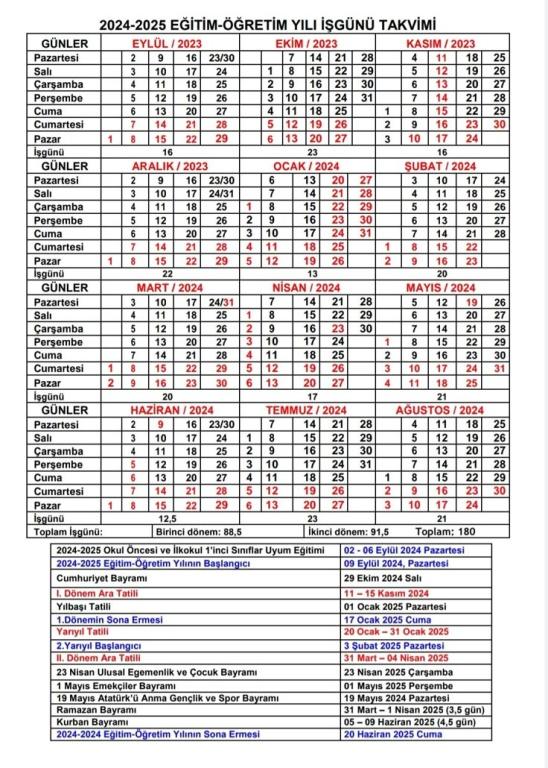 Kartal Anadolu İmam Hatip Lisesi Çalışma Takvimi